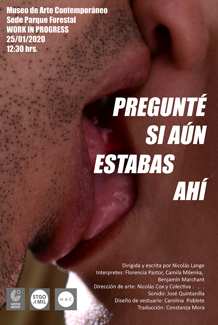 "Pregunté si aún estabas ahí" cuenta con el apoyo de MAC (Museo de Arte Contemporáneo, Santiago) y ha sido presentado por primera vez en un work in progress en el Museo de Arte Contemporáneo durante enero de 2019 en el marco del Festival Santiago a Mil desde el LAB ESCÉNICO.