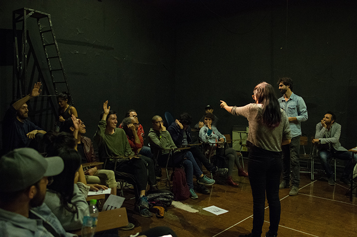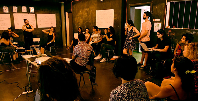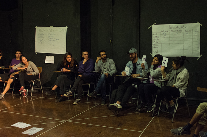 "COLISEO" no es una obra de teatro en el sentido clásico de la palabra, sino que se trata de un dispositivo escénico vivo, es decir un sistema lúdico que tiene como objetivo la creación colectiva de una pieza teatral. Es un espectáculo vivo que sigue la lógica de un juego en cuyo contexto se cruzan diversas disciplinas artísticas dándole un rol clave a la participación activa del público en el proceso de la construcción de la obra. Cada participante toma un rol que representan a los diversos elementos creadores del fenómeno escénico, es decir dramaturg@, director@, actores, públicos, críticos, músicos, diseñadores, iluminadores, entre otros. Enmarcado en un sistema de turnos, cartas y azar cada participante será desafiado a desarrollar el proceso creativo desde su ámbito, siguiéndole en eso las instrucciones de un Showmaster que guía el juego. El dispositivo fue creado con siete modalidades diferentes de juego, con instructivos que cambian y que transforman cada sesión en una experiencia única.