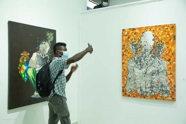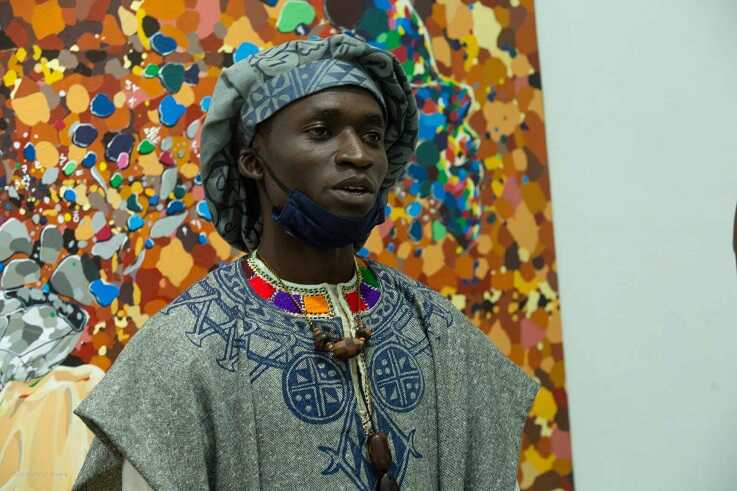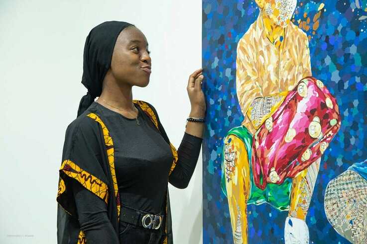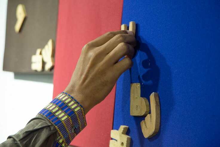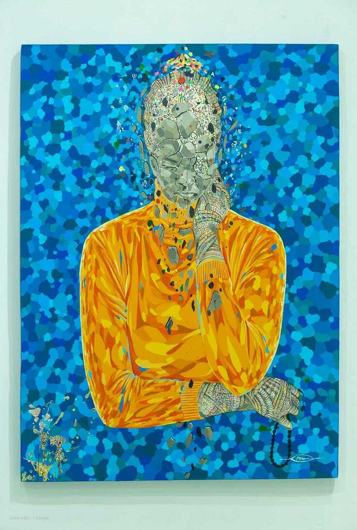 Mounir Mohamed Ngoupayou translates knowledge through culture, which is perceived through the significant patterns of elements from our environment and the writings that result from intangible heritage. Mounir presents Man through a trilogy: from states of intense depression, to full consciousness and to enlightenment. The chromatic diversity in his work is a diversity of cultures and thus denotes ease and a deep ecstasy of life. His works are also presented by the assembly of canvases in polyptics.