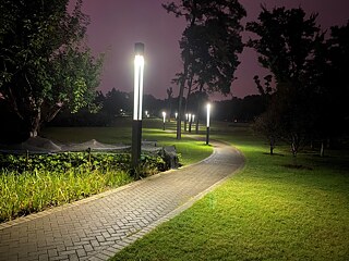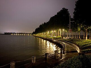 Beleuchtung am East Lake im nächtlichen Regen