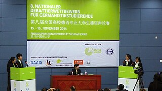 全国高校德语辩论赛 ©Goethe-Institut China Debattierwettbewerb 北京德国文化中心·歌德学院(中国)曾14次与国内合作伙伴共同合办高校德语专业大学生德语辩论赛。 第十五届全国高校德语专业大学生德语辩论赛 – 2025年10月&11月 第15届德语辩论赛 往届回顾 2024: 线上&线下 线上线下混合模式辩论赛 88位学生,44所大学,一个目标:第十四届全国德语辩论赛总决赛! 在激烈的线上初赛之后,16支顶尖队伍于2024年11月16日齐聚浙江科技大学。数字化、可持续发展与环境保护等议题对语言表达与分析能力提出了极高要求。约36,000名观众通过微信观看了比赛直播。最终,北京大学队伍荣获冠军。向所有参赛选手以及在幕后辛勤付出的组织者们致以衷心的祝贺! ©歌德学院(中国) 2022:线上 线上辩论 继2019年在济南的唇枪舌剑之后,我们联合北京外国语大学和外语教学与研究出版社,诚邀所有德语专业本科生参加第十三届全国高校德语专业大学生德语辩论赛。 ©歌德学院(中国) 2019:济南 辩论连接你我 在线课程是否能取代大学或语言学校的面授课程?全国要求垃圾分类回收是否有意义?医院和养老院是否应该多使用护理机器人?这些只是10月19、20日举办的第十二届全国高校德语专业大学生辩论赛的部分热辩问题。 ©歌德学院(中国) 2018年:北京 如何应对冲突? 如何应对冲突?”——这是本届全国高校德语专业大学生德语辩论赛的活动主题,同时也是歌德学院(中国)三十周年庆典活动的主题之一。 ©歌德学院(中国) 2017年:长春 寒冷北国的火热比拼 “未来人工翻译软件的发展,是否能代替人们学习外语?”围绕这一辩题,本届全国高校德语专业大学生德语辩论赛的决赛辩手们展开了辩论。在第十届辩论大赛上,来自全国48个德语院系的大学生们围绕不同的辩题与队友并肩进行了为期两天的比赛。大赛承办方是位于长春的吉林华桥外国语学院。 ©歌德学院(中国) 2016年:天津 生机勃勃的辩论文化 您认为星期日商店应该关闭吗?请您在几分钟后阐述观点,反驳您的对手,同时请您使用只学习了几年的语言!11月12至13日来自全中国48所大学的学生们相聚在天津南开大学举行的第9届全 国高校德语专业大学生德语辩论赛。他们的表现非常出色! ©歌德学院(中国) 2014年:重庆 德语专业大学生德语辩论赛正在进行 周六清晨6时的重庆,黑夜还未隐去,来自全国的96名大学生正在等待着抽取初赛的号签。无法预料的抽签的结果将决定着参加第八届全国高校德语专业大学生德语辩论赛的选手们的辩题和辩论台后较量的对手。 经验交流 会倾听才能会辩论 第八届全国高校德语专业大学生辩论赛冠军谈论他们的夺冠经历。杜婧是对文学情有独钟的德语专业学生,她喜欢阅读,品茶和音乐。包志文是一名很积极的学生,热心学校和社会各项公益活动。 联系方式 杨佳芝 德语教学合作处主任 vera.trojansky@goethe.de 回到顶部
