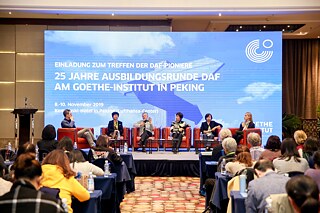 自上世纪80年代以来,歌德学院(中国)一直和国内的德语教学专家们紧密合作。这种合作和国内的日耳曼语言文学院系的建立和发展有着不可分割的联系。这其中的一个重要原因就是,1995年至1998年当时国内的年轻一代的德语教师们参加了由歌德学院主办的为期一年半的教学培训以及与之对应的关于培训师的课程。如今,当年的这些教师们都已经成为了著名的教授、学者,或是在国内的德语教育部门中担任重要的角色。
