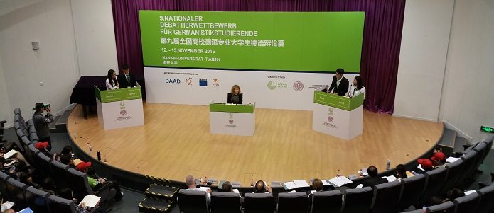 德国语言文学部举办的辩论赛在中国已享有盛誉,在第9年里也受到热烈欢迎,48个有限的参赛名额被迅速排满。每所大学选送2名学生到天津南开大学。比赛地点每年都由中国教育部德语教学指导委员会确定,并与歌德学院共同组织该辩论赛。