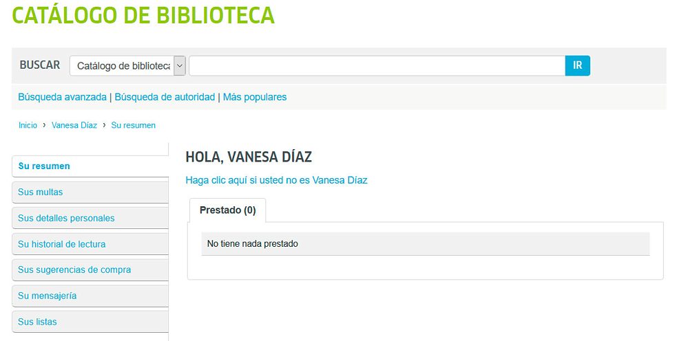 Wenn Sie sich erfolgreich eingeloggt haben, werden Sie den Kontoübersicht sehen, wo alle Information über Ihre ausgeliehenen Materialien zu Verfügung steht.