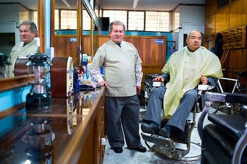 Der BarbierBevor Christian Torres Suárez vor 50 Jahren aus Tolima nach Bogotá kam, war er einfacher Bauer. In der Stadt arbeitete er zunächst als Bauarbeiter, suchte aber bald Anstellung in einem Friseursalon. „Die Arbeit erschien mir körperlich etwas weniger anstrengend. Außerdem trifft man interessante Menschen“. Ihm ist es wichtig, in einem Salon mit Tradition zu arbeiten und er ist stolz, dass die meisten seiner Kunden gebildete Leute sind. Etwa sechs Kunden hat er am Tag, jeder Haarschnitt bei ihm kostet umgerechnet 3 Euro. Sozialversicherung oder Rente hat er auch mit 74, nach über 40 Jahren Arbeit als Friseur, nicht.