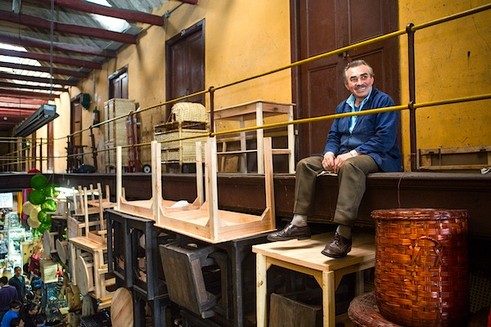 Der MöbelverkäuferJuan Moreno, 66, kommt ursprünglich aus Boyacá, arbeitet aber schon seit seiner Kindheit in Bogotá. Er ist Verkäufer in der „Pasaje Rivas“, einer Einkaufspassage im Zentrum Bogotás, die letztes Jahr ihren 120. Geburtstag feierte. „Dies ist ein historischer Ort für den Handel in Bogotá“ erzählt Moreno. „Zuerst waren hier Bauern, die ihr Obst und Gemüse verkauften, nach dem ‚Bogotazo‘ 1948 kamen dann aber immer mehr Verkäufer für Kunsthandwerk und Haushaltsgegenstände – und so ist es bis heute geblieben.“