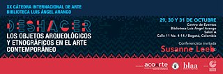 Los días 29, 30 y 31 de octubre tendrá lugar la XX Cátedra Internacional de Arte de la Biblioteca Luis Ángel Arango. La teórica del arte alemana Susanne Leeb es la invitada central a este evento con el tema "Deshacer los objetos etnográficos y arqueológicos en el arte contemporáneo".