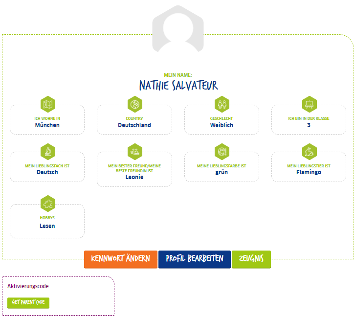 Ovaj kod se generiše automatski za svaki nalog i može biti stavljen na raspolaganje roditeljima i/ili nastavnicima. Ovaj kod možete integrisati u svoj profil kako biste pratili napredak svoje dece/učenica/učenika („Pogledajte izveštaje“):