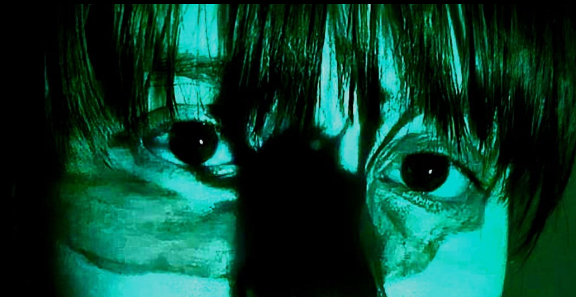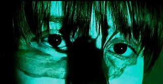 Zweifarbiges Bild zeigt Augen im Schatten.