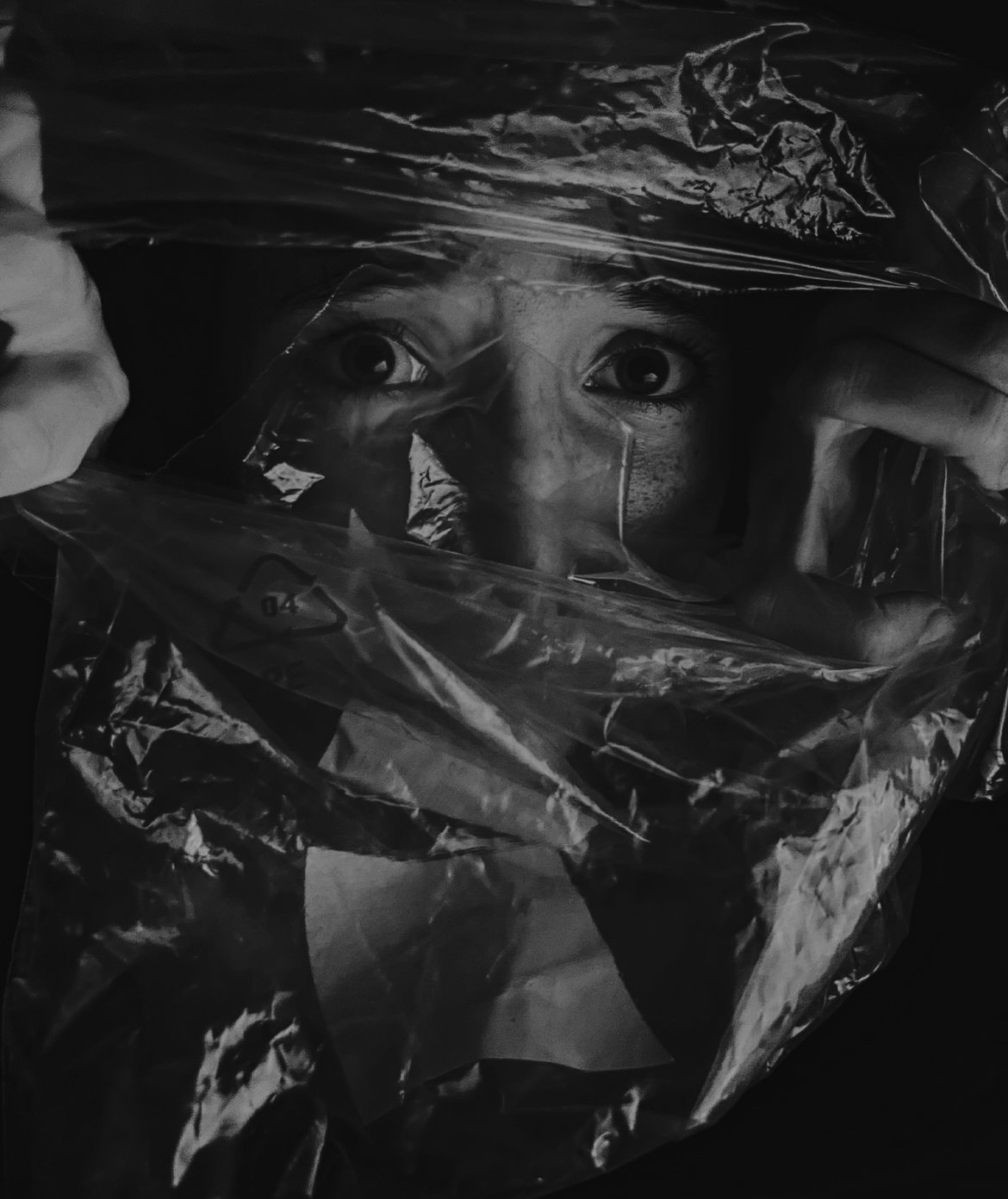 Unsere Fotoserie zeigt den Prozess der Befreiung von der falschen Haut, die wir angenommen haben, um uns vor anderen zu schützen – eine Befreiung, die schmerzhaft ist aufgrund der Angst vor Ablehnung und Urteil. Sie ist inspiriert vom Lebenszyklus von Insekten, die sich in einem Kokon, den sie selbst gebaut haben, verpuppen. Wir verwenden Kunststoffmaterial, um die Künstlichkeit der Maske zu zeigen, die wir alle der Gesellschaft gegenüber aufsetzen. Dies steht im Zusammenhang mit der Idee, dass die Umwelt in ihrer natürlichen Form für uns nicht nützlich ist und wir sie nach unseren Bedürfnissen modifizieren müssen. Das verbindet sich mit der Vorstellung, dass etwas, das uns nicht dient, wertlos ist und kein Existenzrecht haben sollte. Dies spiegelt unsere persönliche Erfahrung wider, Angst vor Ablehnung zu haben und lieber passiv und unauffällig zu bleiben, als verworfen zu werden.
