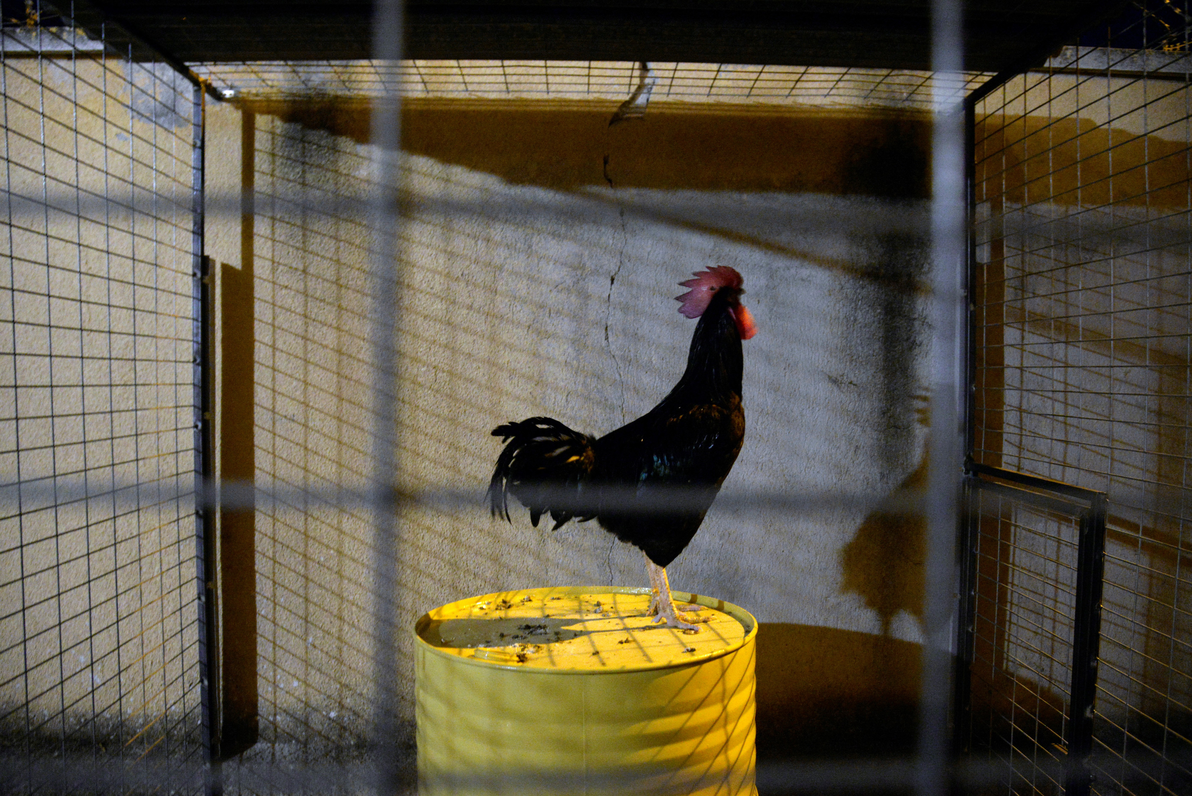 Canlı bir horoz serginin çok özel bir parçası – Andreas Papamichael'in bir enstalasyonu.