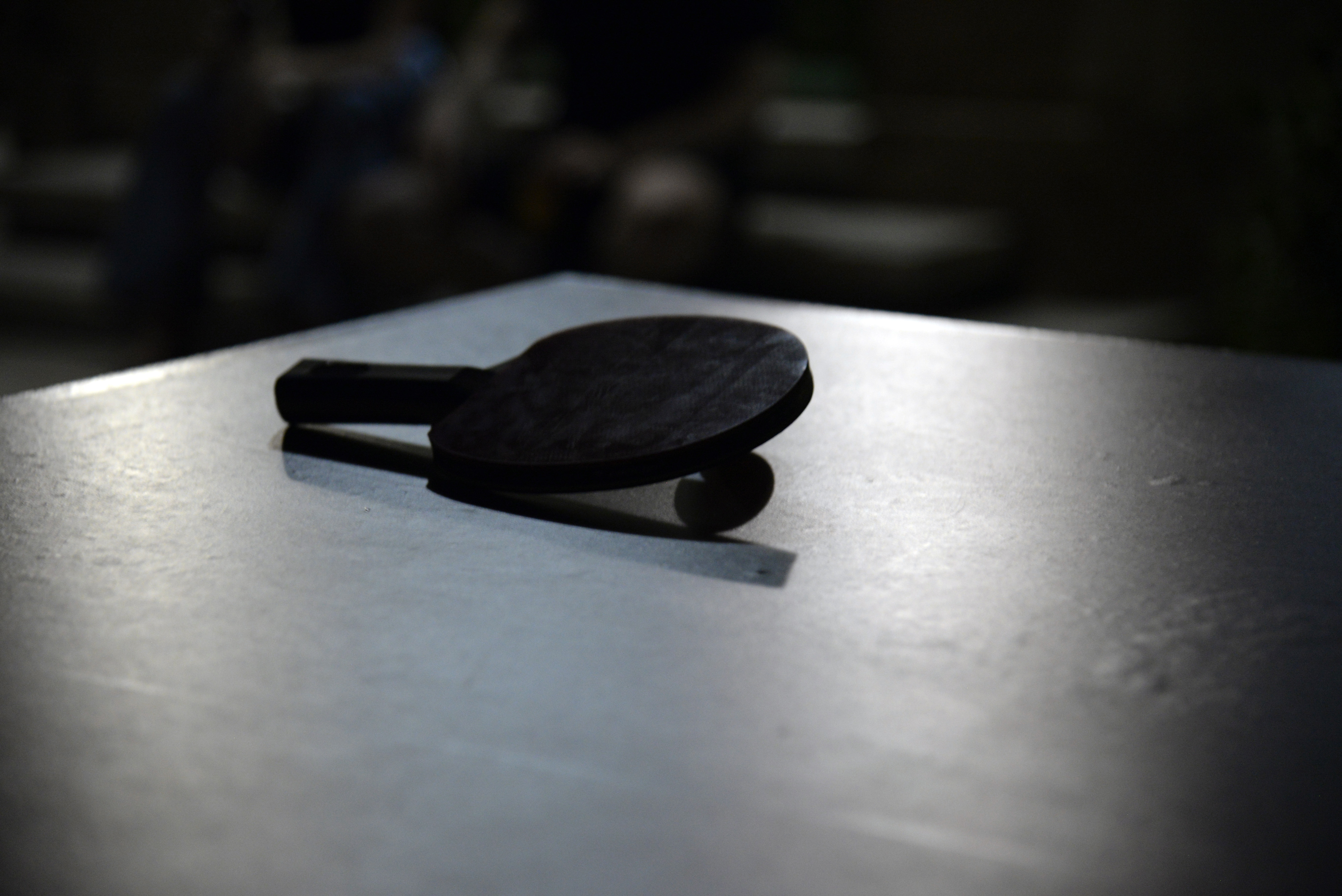 Sergide horozun yanında, pingpong masası gibi sergilenen başka parçalar da var (Enstalasyon RafaellaConstantinou).