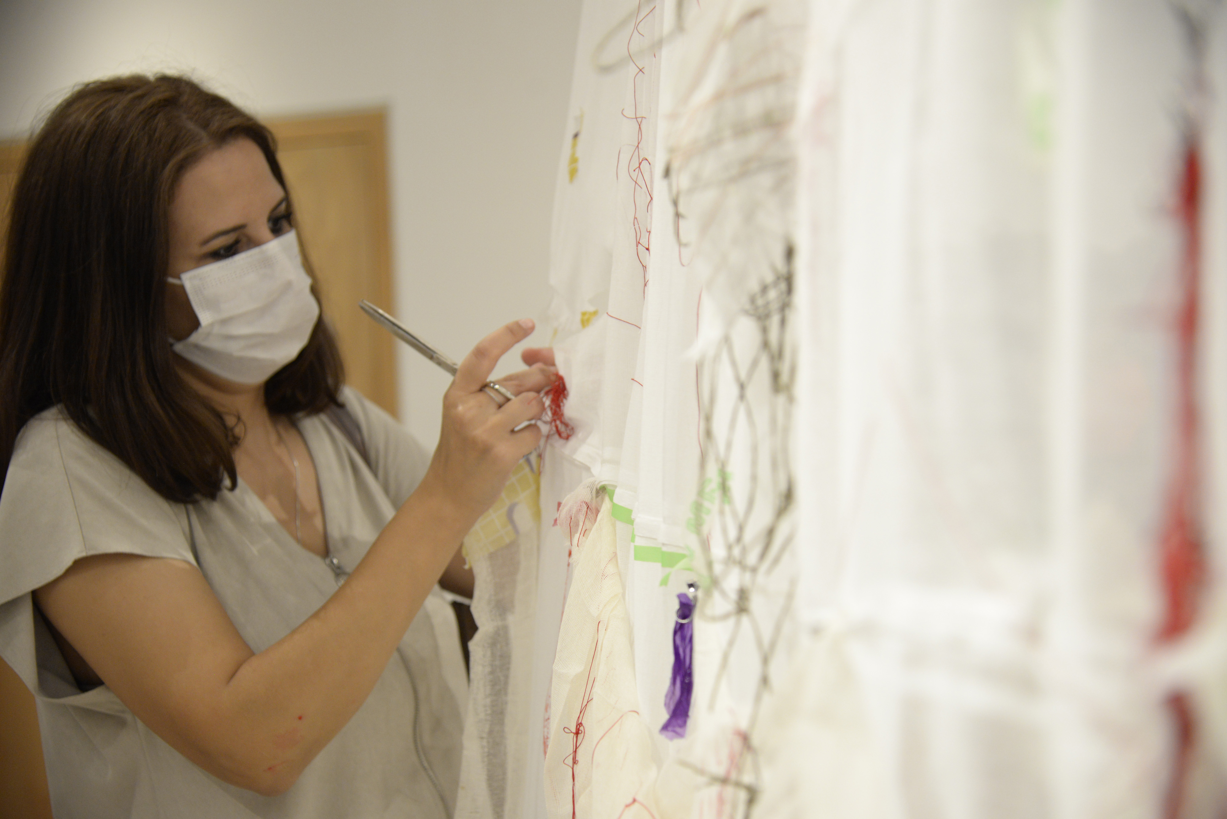Mehves Beyidoğlu'nun perde tasarımına ziyaretciler de katkı koyabilirler.