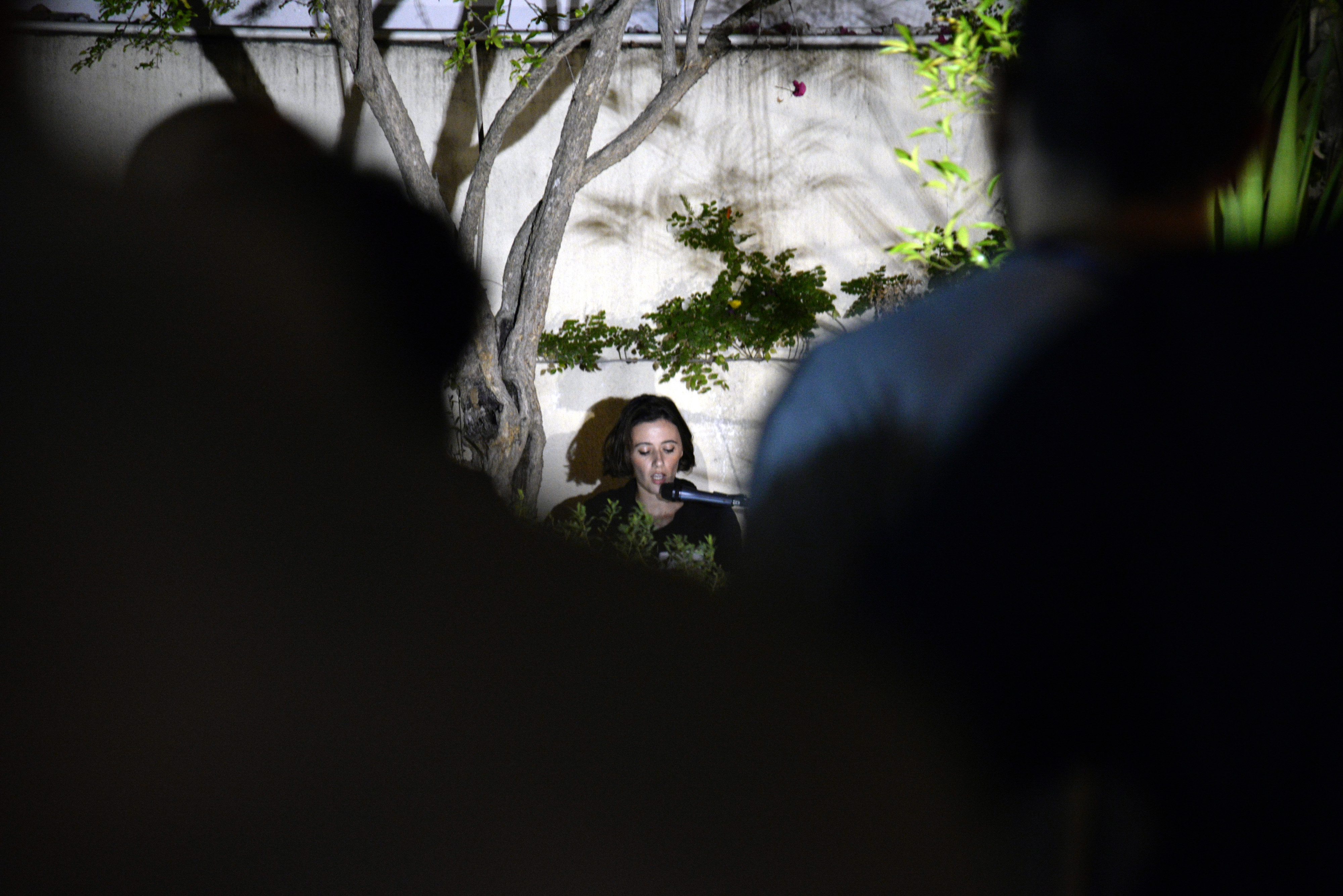 Korallia, MYAM MWAM MIAOW MEOW MAM MA adlı eserini okuyor.