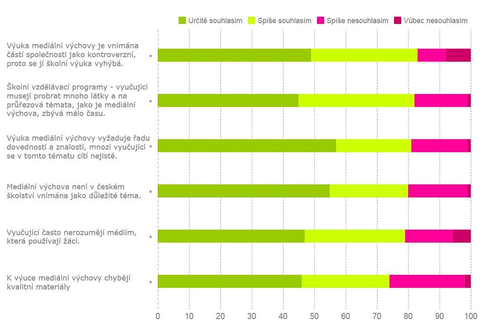 Z dat vyplývá, že většina vyučujících se cítí ve výuce mediální výchovy nejistě a postrádá podporu. Celkem 72 procent vyučujících mediální výchovy neabsolvovalo žádné mediálně-vzdělávací školení.