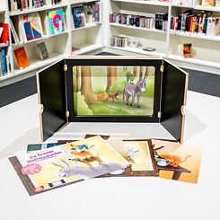 Nadchněte děti vyprávěcím divadlem Kamishibai!Vyprávěcí divadlo Kamishibai našlo své pevné místo v mateřských a stále častěji také na základních školách. Jeho kouzlo spočívá v tom, že se jedná o zcela analogové médium. Na rozdíl od obrazovky nejsou diváci ve vyprávěcím divadle tlačeni jen do pasivní role. Naopak, jsou sami skutečnými aktéry, kteří společně a pro sebe otevírají kouzelné příběhy. S naším divadlem si můžete zahrát příběh o Malé čarodějnici, Brémských muzikantech nebo Malém strašidýlku.