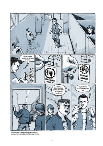 Na základě vlastních zkušeností z mládí vypráví autor v tomto komiksu o neonacistech v Dortmundu, baště pravicových extremistů. V částečně realistických obrazech a věcným tónem líčí, jak se jako školák dostal do hledáčku pravicově extremistické mládeže, protože oponoval jejich heslům. Byl několikrát zbit, stříleli po něm. Přesto nikdo z učitelů a rodičů jeho prosby o pomoc nevyslyšel. Mnozí z nich sami zastávali extremistické názory. Pomohl mu jen jeden kamarád. Vyprávění plyne retrospektivně, autor v dialozích se svým synem vysvětluje pozadí neonacistického hnutí. Díky tomu a díky vysvětlujícímu textu v příloze je kniha vhodná pro mládež i jako studijní materiál na dané téma.