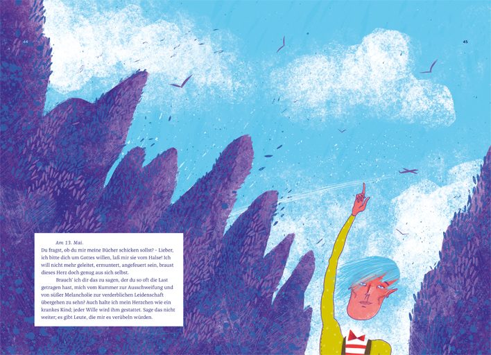 Na základě původního textu rozvíjí ilustrátorka Franziska Walther velmi svébytnou adaptaci klasika. Mnohovrstevnaté kresby, jež doplňují malebné prvky, názorně podávají protagonistovu životní krizi. Wertherovo hledání lásky a naplnění stejně jako jeho zklamání po odmítnutí ztvárňuje zčásti abstraktními obrazy, v nichž hraje důležitou vypravěčskou roli barevnost a kombinace různých grafických stylů. Jen na několika málo místech explicitně citovaný Goethův text je díky modernímu ději zasazenému do současnosti, včetně vizuálního kódu internetového věku, citlivě transformován do nového, svébytného vyprávění. Kniha získala ocenění German Design Award 2017.