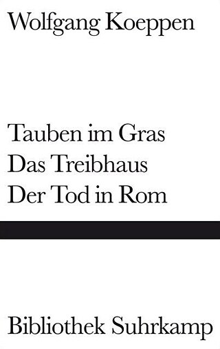 Jednotlivé romány Tří románů Wolfganga Koeppena byly publikovány v letech 1951 až 1954 a popisují situaci v té době mladé Spolkové republice Německo, jak ji vnímá autor. V této knize jsou shrnuty všechny tři tituly. Holubi v trávě je epizodický román, který popisuje jeden den v Mnichově v roce 1949. Skleník je metaforou pro tehdejší politiku a provází opozičního poslance. Smrt v Římě spojuje v hlavním městě Itálie různé protagonisty, kteří byli válkou ovlivněni různými způsoby.