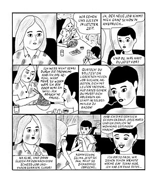 Selmu opustí přítel, což ji přivede do hluboké krize, v jejímž průběhu se tato mladá žena se sklony ke snění za bílého dne mimo jiné vcítí do života své nepřítomné sousedky. Obtížné hledání sebe sama se odehrává na pozadí témat, jako je povrchnost přátelských vztahů či dopad technologického vývoje na každodenní život lidí. Svými hranatými, syrově působícími kresbami tužkou vytvořila autorka kulisu dystopického světa v budoucnu, zpola realistické scény se tu střídají s prvky magického realismu – fantazie a skutečnost se dá v Selmině životě stejně jako v této knize jen stěží oddělovat.