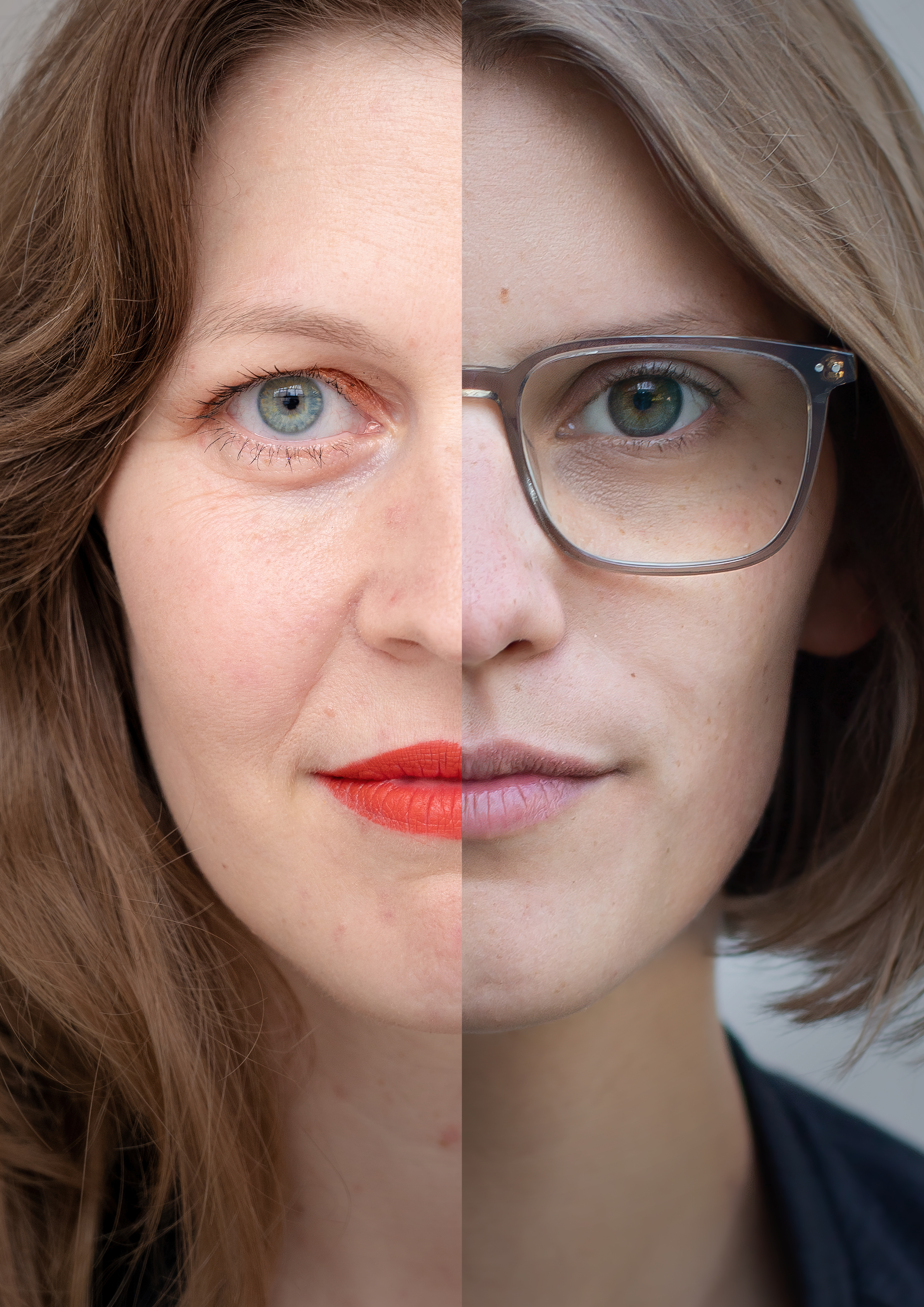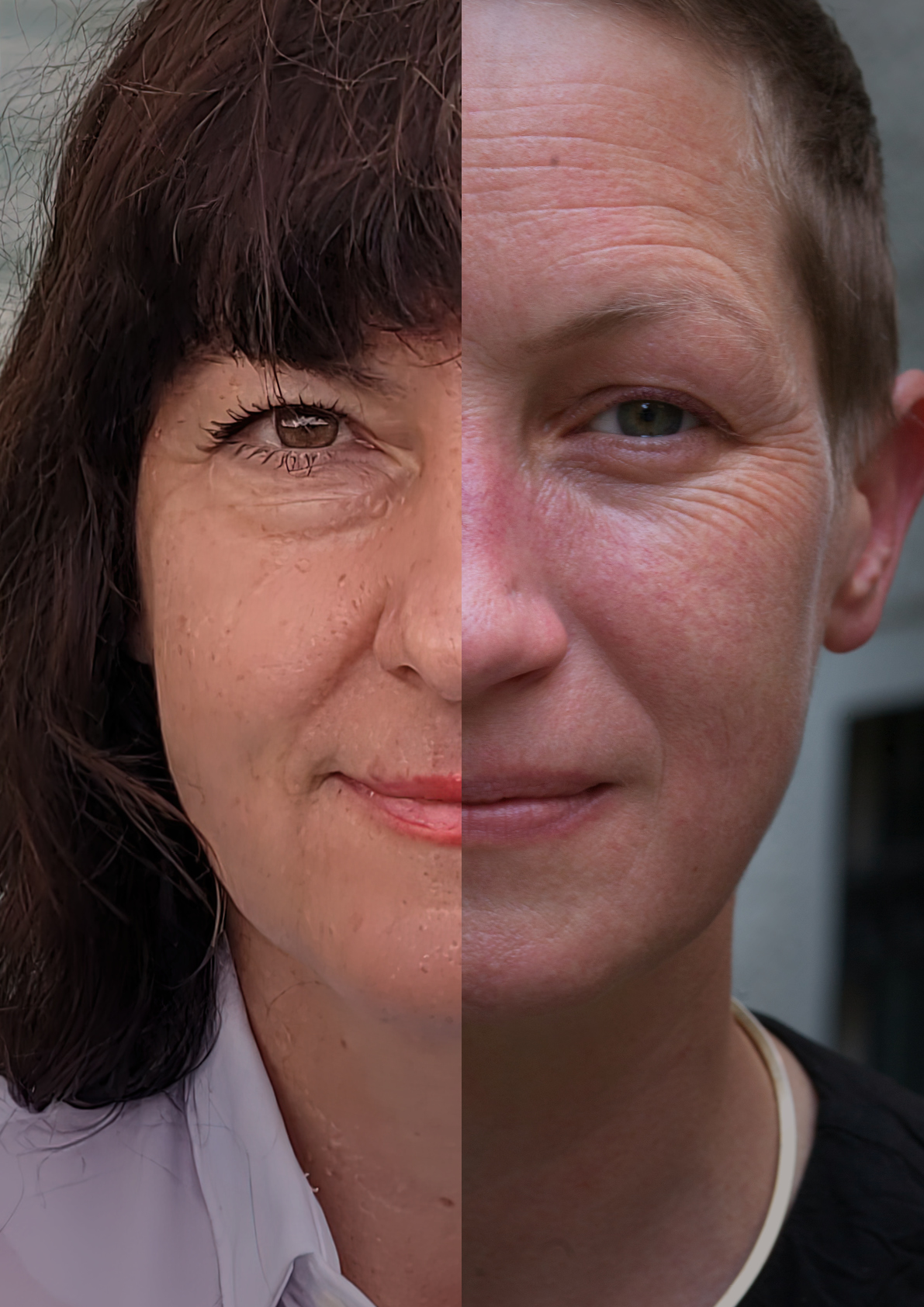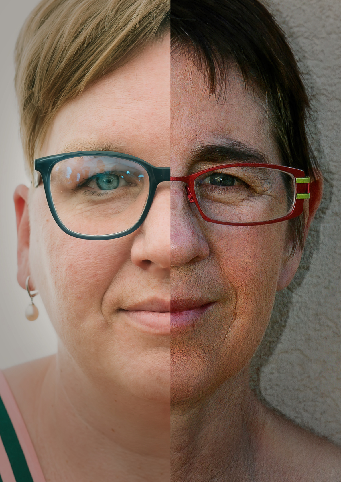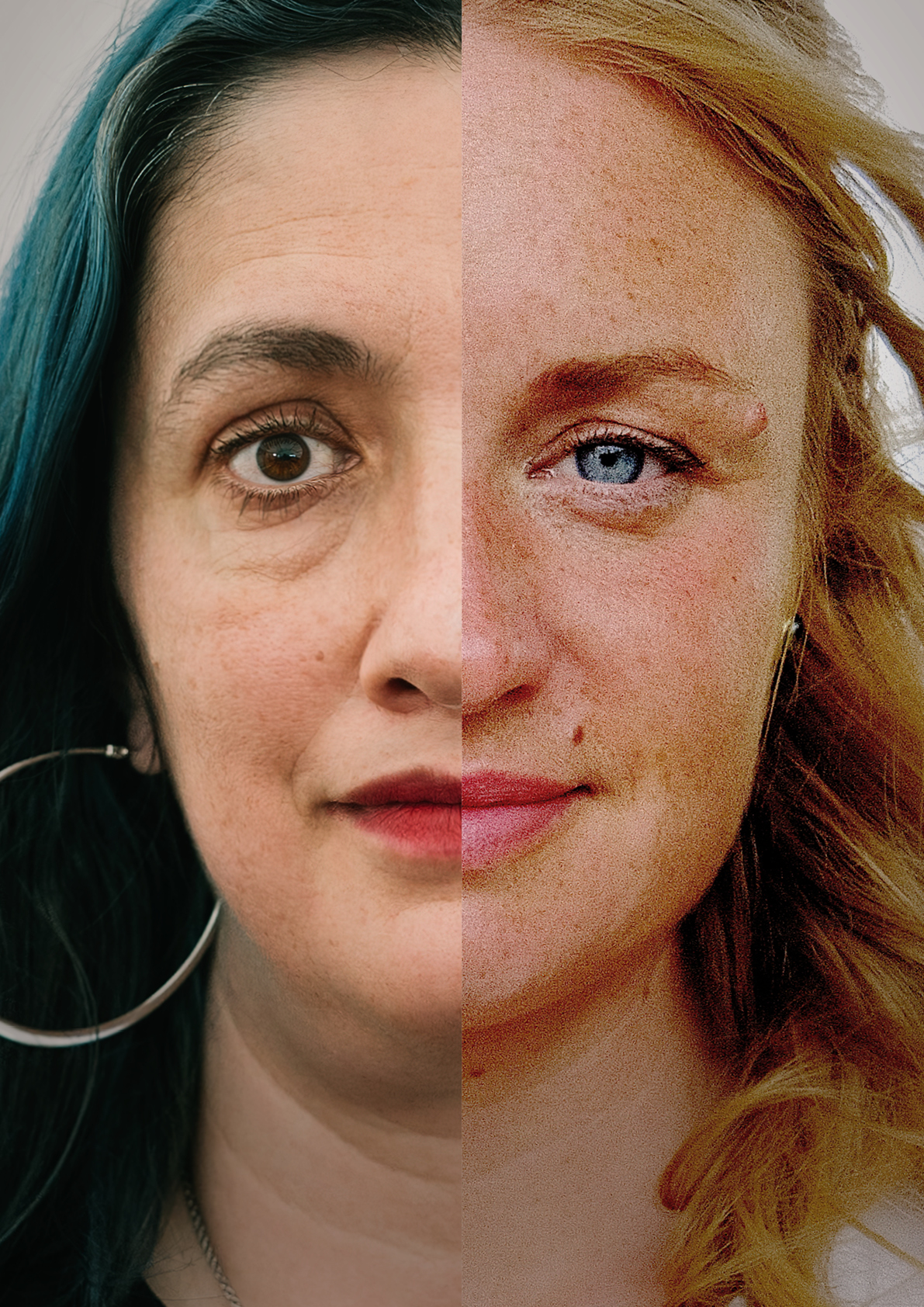 Am Anfang gab es ein Visual für das Projekt: Ein Bild von zwei uns völlig unbekannten Frauen, die sowohl ethnisch als auch kulturell, vom Alter her und sozial sehr unterschiedlich schienen, deren Gesichtshälften zu einem neuen Gesamtbild verschmolzen.