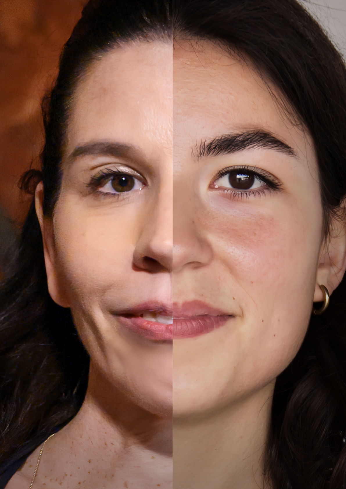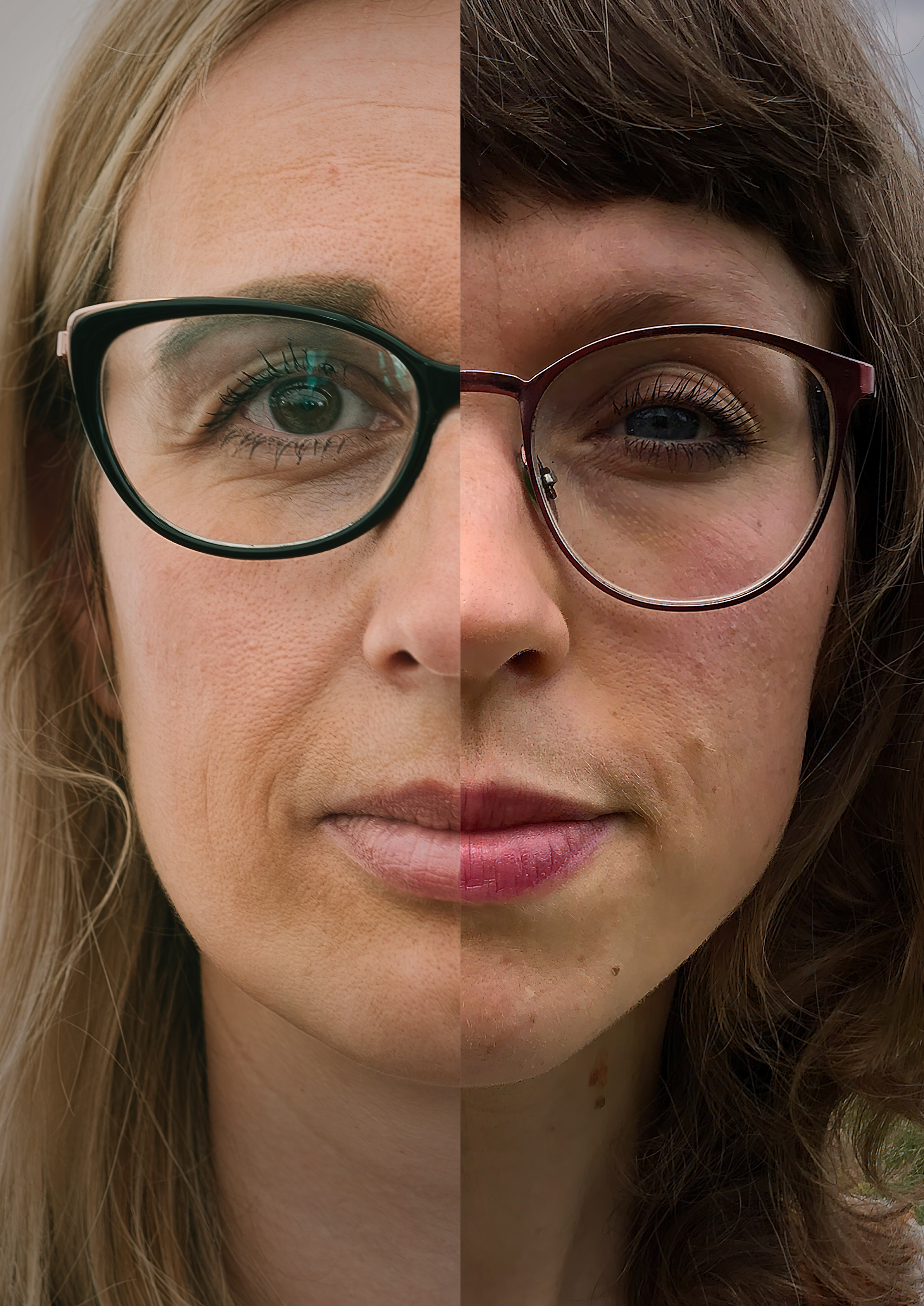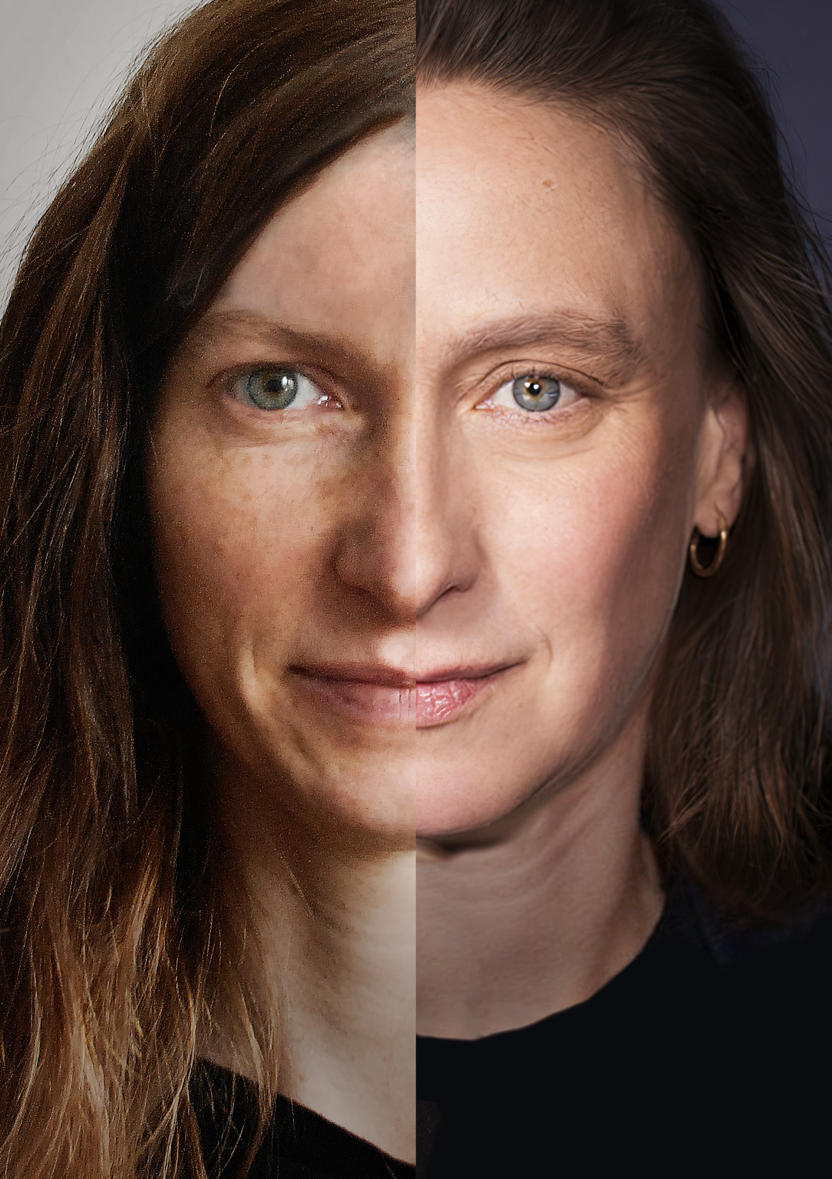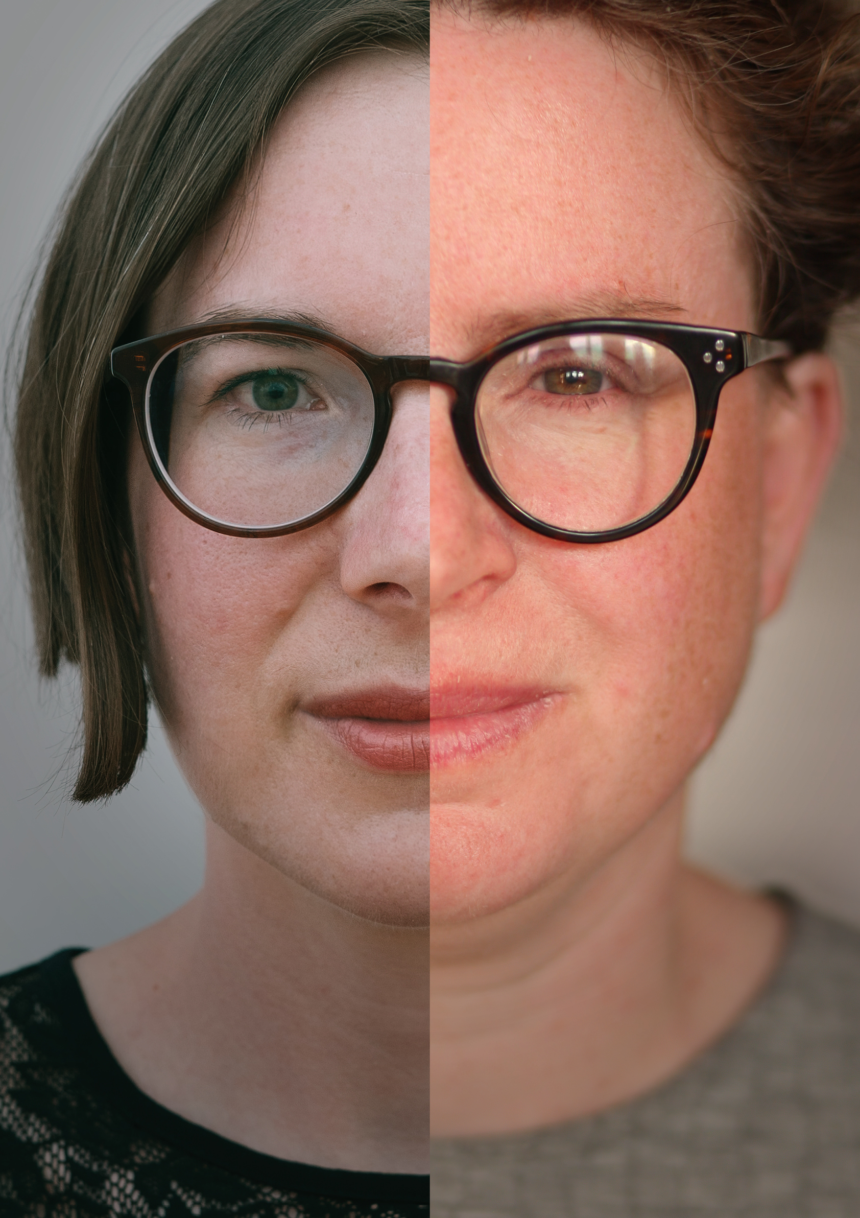 Am Anfang gab es ein Visual für das Projekt: Ein Bild von zwei uns völlig unbekannten Frauen, die sowohl ethnisch als auch kulturell, vom Alter her und sozial sehr unterschiedlich schienen, deren Gesichtshälften zu einem neuen Gesamtbild verschmolzen.