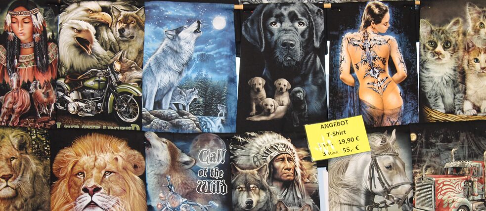 Zunächst einmal hatte ich ja keine Ahnung, was man alles Motorrad nennen kann. Bisher kannte ich nur wenige verschiedene Modelle – diese verchromten mit dem langen Lenker, auf denen meist die Hells Angels fahren und dann die, die unter Blech versteckt sind und auf denen Verrückte ohne Selbsterhaltungstrieb sitzen. Hier gab es alles. Motorräder für das Gelände mit riesigen Greifern statt Rädern zum Beispiel. Ich stellte mir vor, wie diese schön polierte Maschine wohl aussieht, wenn der neue Eigentümer zum ersten Mal irgendwo durch den Steinbruch oder den Wald heizt. Wie sich der ganze Schlamm wohl aus den vielen Ritzen waschen und kratzen lässt? Das gleiche gilt sicherlich auch für die Kleidung: Am Anfang ist es ein farbenfroher Fahrer, der einem Papagei ähnelt, am Ende ein formloser Ball aus Schlamm und Schmutz. Pfui.Auch die Kleidung ist ein Kapitel für sich. Davon gab es eine ganze Menge. Von Socken bis hin zu massiven Lederjacken mit Nieten, die wie Werbung für die Vereinigung von Gerbereien und Eisenwerke aussahen. Menschen mit Vorliebe für Leder und mit solidem Geldbeutel würden auf jeden Fall in vollen Zügen auf ihre Kosten kommen. An fast jedem Stand zog sich jemand an, aus oder um und probierte aus. In der Regel ging ein ansehnlicher Herr im Anzug hinein, heraus kam ein Aragon mit Helm. Das gleiche bei Frauen – die Kostümchen wurden gegen Lederhosen mit verstärkten Knien und so Fransen ausgetauscht.