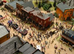 Erstens, Gleise, wohin man nur schaut. Modellgleise, natürlich. Auf ihnen fahren überall Miniaturzüge herum, so gut gemacht, dass man sie von den echten Zügen kaum unterscheiden kann. Und dann Figuren. Es müssen ungefähr eine Million sein. Oder besser gesagt, zwei. Die kleinen Männchen sind überall. Ein Zugführer guckt aus seiner Kabine, die Polizei pfeift auf einer Pfeife, in den Fenstern der Bürogebäude sieht man einen Angestellten, wie er auf seiner Tastatur auf dem Tisch haut, ein Kletterer beobachtet, wie ihm die Axt herunterfällt. Im Stadion findet gerade ein Konzert von DJ Bob statt, im Publikum sitzen Zehntausende von Fans, die mit der Kamera blitzen und auf einem kleinen Bildschirm wird ein Video projiziert. Im skandinavischen Teil manövriert eine riesige Fähre im Fjord mit echtem Wasser unter einer Hängebrücke, darunter, am Boden, lässt ein Taucher Blasen aufsteigen und eine Krabbe winkt mit einer Schere. Das Modell der südschwedischen Stadt Kiruna ist perfekt, ich war dort einmal im Urlaub und erinnere mich gut daran, sonst würde ich nicht darüber schreiben. Am Flughafen starten und landen Flugzeuge, in den Schweizer Bergen (über 6 Meter hoch!) tummeln sich Skifahrer unter der fahrenden Seilbahn, Dampflokomotiven schnaufen in den Tunnel und aus dem Gefängnis fliehen die Insassen...Es ist eine unglaubliche Welt voll von aufwendig gestalteten Details, von denen viele per Taste am Geländer in Betrieb gesetzt werden können. Auch ein Bungee-Jumper springt tatsächlich vom Kran. Die deutsche Gründlichkeit hat sich hier buchstäblich entfesselt und ist zum Ausbruch gekommen. Man kann es nicht einmal richtig beschreiben, man muss es sehen.