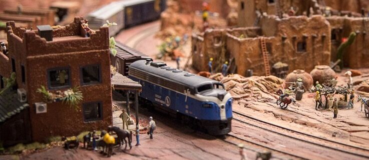Von einer Modelleisenbahn habe ich dank meines Ex-Mannes eine klare Vorstellung. Sie ist klein, leuchtet, hupt, manchmal qualmt sie auch und wenn sie in einen Tunnel fährt, treibt das die männlichen Zuschauer in den Wahnsinn. Fachkundig diskutieren sie über jede noch so kleine Signaleinrichtung, schwärmen davon, wenn die winzigen Schranken hochgehen und sind begeistert, wenn zwei Bonsai Züge sich auf Nachbargleisen treffen. Ich weiß auch, dass es sie in verschiedenen Größen gibt. Von dem komplett winzigen Modellchen, das in eine Glühbirne passt, bis zu den Garteneisenbahnen, auf denen man, glaube ich, sogar fahren kann. Das war es dann aber auch schon mit meinem Wissen.