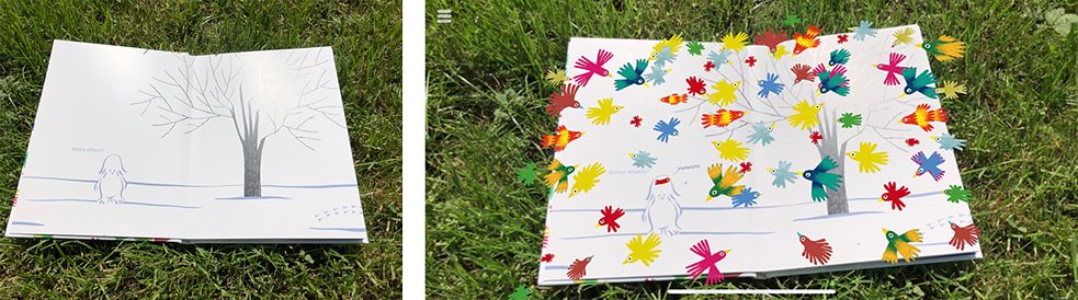 Ferner gibt es für Kinder und Jugendliche interaktive Geschichten, die nur im digitalen Format erscheinen, sowie medienübergreifende Produkte, die Buch und App verbinden. Der Carlsen Verlag beispielsweise setzte mit seiner LeYo!-Reihe – beziehungsweise mittlerweile mit Carlsen Clever – Augmented und Virtual Reality (AR bzw. VR) im Bilder- und Sachbuchbereich ein. Hier ergänzt die App das gedruckte Buch um zusätzliche Inhalte, die über Smartphone oder Tablet ausgegeben werden. Auch die bei Knesebeck erscheinenden App-Geschichten sowie die unter dem Label „SuperBuch“ zusammengefassten Bilderbücher verschiedener Verlage basieren auf dieser Idee. Anders Was ist denn hier passiert? von Julia Neuhaus und Till Penzek (Tulipan Verlag). Hier ist neben zwölf rätselhaft-skurril anmutenden Bilderbuchszenen ein QR-Code abgedruckt, der die Betrachter zu kleinen Trickfilmen führt. Diese verraten, was der jeweiligen Situation im Bild vorangegangen ist. Auf diese Weise bietet die analog-digitale Medienkombination einen ausgesprochen unterhaltsamen Mehrwert.