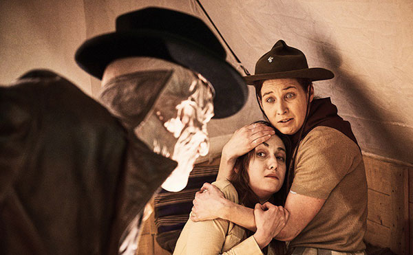Das körperlich anstrengende Theater, bei dem Blut und Schaum aus dem Mund fließen, und bei dem sich die Figuren direkt auf der Bühne verwandeln, krönen die Leistungen der Schauspieler. Mit präziser Mimik und körperlichem Einsatz treffen sie den richtigen Ton des Stücks, das sich ansonsten leicht als kontroverse Provokation abtun ließe. Bis auf Barbora Kubátová (Bedřiška), die sich von der verantwortungsvollen Führerin über einen vom Teufel besessenen Wildfang bis zu Lara Croft wandelt, ist jeder Schauspieler in mehreren Rollen zu sehen. Tereza Dočkalová als Pfadfinderin mit rollenden Augen erinnert an ein neugieriges Schulmädchen im finsteren Wald, welches keine Zweifel an der Existenz von Geistern hat, und das Bloody Mary ruft, damit diese sie den Anführer der Pioniere hinter die Wand zieht und ihn in die imperialistische Hölle schickt. In der Rolle der Bildhauerin Martina gibt sich Dočekalová hingegen gebührend frei.