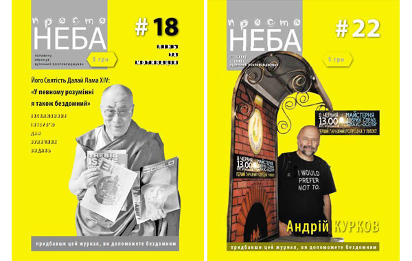 Die Zeitung „Unter freiem Himmel“ (ПРОСТО НЕБА / Prosto Neba) kann man auf den Straßen der westukrainischen Metropole Lwiw erwerben, wo sie von obdachlosen Menschen verkauft wird. Diese soziale Initiative bringt einerseits einen Verdienst und soll andererseits die Meinung über Obdachlose in der Gesellschaft ändern. Durch die Beiträge bekannter ukrainischer Autoren ist sie gleichzeitig ein hochwertiges Kulturmagazin, das seine Stammleser hat.