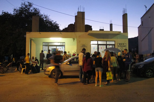 Ich stelle Obst, Kekse und Trinken auf den Tresen für Leute, die noch kommen, lege Zahnbürsten und Seife hin. Katerina verabschiedet sich lange von Pepi, Christos und den anderen. Sie reist morgen früh ab. Sie wird das Gemeinschaftsgefühl vermissen, sagt sie mir später.