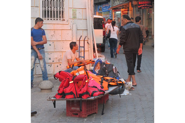 Weitere vier Männer in zwei Müllautos sollen diese davon abhalten. Eigentlich ist ihr Job, die Schwimmwesten und den Bootsmüll wegzuschaffen; ein paar Journalisten mit Kameras, die jene interviewen, die am wenigsten scheu sind und am besten Englisch können.