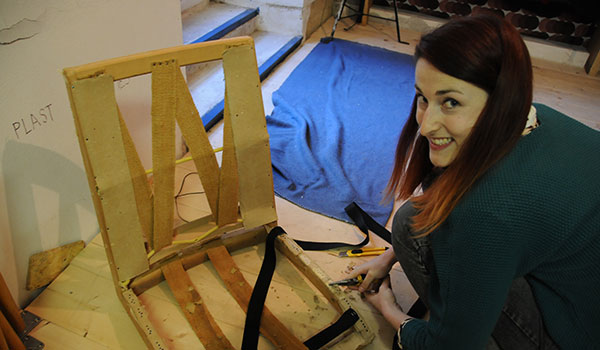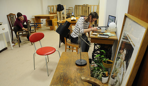 Ende Oktober 2015 stellten die Mädchen beim Umweltministerium einen Antrag zur Förderung für ihre Möbelwerkstatt, deren wichtigstes Ziel das Recyceln von altem Möbel ist. Ende Februar erhielten sie die freudige Botschaft: Genehmigt! Zuvor hatten sie bereits einen ganzen Monat eine offene Werkstatt in den ehemaligen Räumen der Zdrojovna im Prager Stadtbezirk 7 betrieben. Den ganzen Februar über wurde geschliffen, geschmirgelt, gepolstert und abgestaubt. Passanten schauten durch die Schaufenster hinein. Sie wurden eingeladen zu Diskussionsabenden über ein abfallfreies Prag 7, konnten aber auch einfach nur eintreten und sich zum Beispiel „eine Spinne von Halabala“ oder einen „Nachttisch vom Herrn Parfümier“ kaufen.