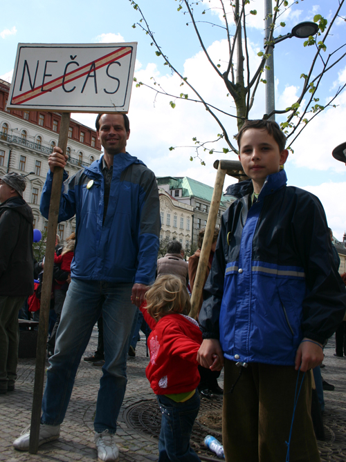 Zum Schluss zücken alle die Schlüssel. Schon 1989 hatte dieser Gänsehaut-Moment das Ende des kommunistischen Regimes eingeläutet. Nun soll das Rasseln der Schlüsselbunde das demokratisch gewählte Kabinett Nečas wach rütteln. „Es wird Zeit, dass sie in Ehre, oder dem was ihnen noch davon bleibt, abdanken“, bestellt Familienvater Petr aus dem ostböhmischen Chrudim den Ministern. In einer Hand hält er seinen Jüngsten, in der anderen ein Schild. Es kündet vom Ende eines Ortes, das den Familiennamen des Premiers trägt (der übersetzt übrigens so viel bedeutet wie „Hundewetter“). Petr sorgt sich um seine Rente und darum, ob er seinen Kindern eine gute Ausbildung wird finanzieren können.