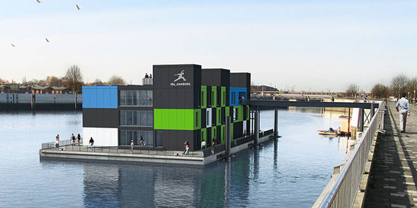 Hamburg ist Vorreiter dieser Bewegung. Seit Februar 2010 liegt das IBA-Dock als größtes schwimmendes Bürohaus und neuer Geschäftssitz der IBA (Internationale Bauausstellung) im Müggenburger Zollhafen. Dieser dreistöckige Kubus aus grün, blau, schwarz und weiß verkleideten Stahlmodulen ist ein Entwurf von Han Slawik aus Hannover. Jörn Walter, Oberbaudirektor der Hansestadt Hamburg, eröffnete bereits 2006 und 2007 zwei im Verfahren unterschiedliche Pilotprojekte für schwimmende Häuser. In einem Investorenauswahlverfahren im Stadtteil Hammerbrook sind in direkter Fortsetzung des Berliner Bogens von Bothe Richter Teherani am Viktoriakai insgesamt 15 Liegeplätze mit zwei unterschiedlichen Haustypen von netzwerkarchitekten und ff-architekten ausgewählt worden.