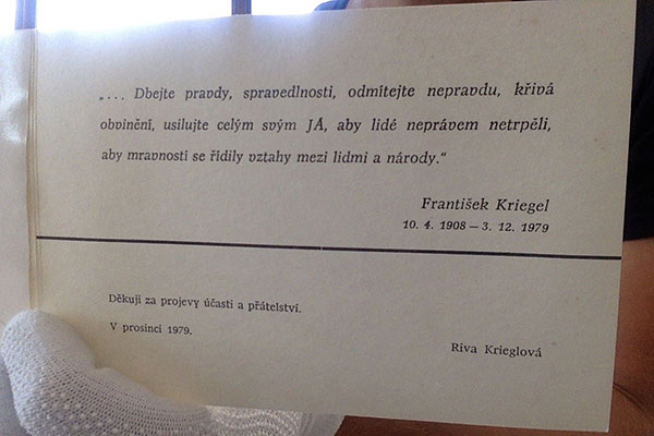 Krieglova asistentka a blízká přítelkyně Milada Snětivá vzpomíná: