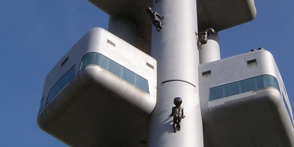 Immer wieder ist mir das Gerücht in Prag begegnet und ich habe mich seither oft gefragt, ob es wohl David Černý selbst gewesen sein könnte, der es in die Welt gesetzt hat. Immerhin, so hat sich bei meinen Recherchen herausgestellt, scheint bislang niemand beim Versuch, seinen Wahrheitsgehalt zu überprüfen, vom Fernsehturm gestürzt zu sein.
