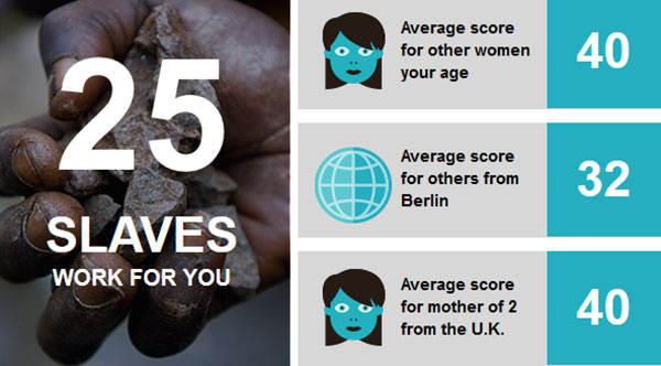Um dies besser zu verstehen, führe ich eine Woche lang Nachhaltigkeitstagebuch. Für meine WG notiere ich eine erste Positivbilanz: Wir essen vegetarisch oder vegan, Textilien, Möbel sowie Elektronik kaufen wir überwiegend Second Hand und vermeiden so, dass neue Güter produziert werden. Wir beziehen Ökostrom und recyceln zur Belustigung ausländischer Freunde „very german“ in sechs Mülleimern. Ein Auto hat keiner von uns, wir fahren acht Monate im Jahr mit dem Rad und zuletzt privat mit dem Flugzeug verreist bin ich 2011. Doch auch dieser bescheidene Öko-Lifestyle hat schnell ein paar Kratzer: So sind meine Zigaretten geradezu das Gegenteil von nachhaltig und während des Winterschlussverkaufs landet ein T-Shirt für drei Euro in meinem Schrank. Die schwedische Modekette verspricht zwar „nachhaltige Baumwolle“ – aber was kommt bei diesem Preis noch beim Produzenten an? Auch andere Lebensbereiche sind problematisch – so erfahre ich auf der Seite slaveryfootprint.org, dass mein Konsumverhalten 25 Menschen in moderne Sklaverei zwingt. Immerhin 15 weniger als der Durchschnitt, aber einfach 25 Menschen zu viel. Die Gründe: mein neues Smartphone sowie Kosmetik mit dem Konfliktmineral Mica.