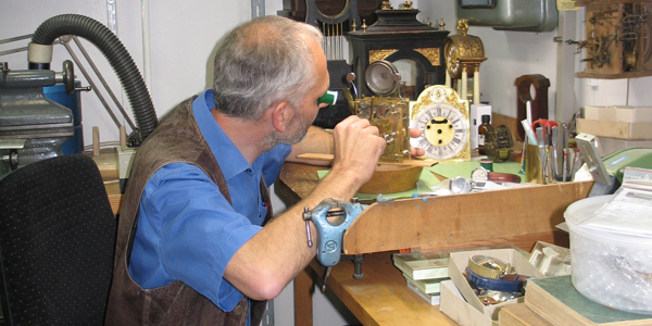 Manchmal verbringt der Uhrmachermeister zehn bis zwölf Stunden am Tag zwischen den Schrauben, Federn, Zahnrädern und Uhrzeigern: „Wenn ich nur während der Öffnungszeiten arbeiten würde, würde ich verhungern, auch wenn das Geschäft boomt“. Es ist faszinierend zuzusehen, wie Erich Gerlach Schritt für Schritt in kaputte Uhren neues Leben einhaucht. „Besonders gefällt mir, alte Uhren wieder zum Laufen zu bringen“, erzählt der Uhrmacher mit leuchtenden Augen. „Moderne Uhren wurden von Computern gemacht und so kann man bei ihnen nur Ersatzteile austauschen. Alte Uhren aber fordern Kreativität. Es macht Spaß mit Kollegen die Schritte zu besprechen, welche für die Reparatur notwendig sind und sich zu überlegen, welche Alternativen man noch hat, wenn ein Reparaturschritt schief geht. Ich freue mich jedes Mal wieder, wenn ich morgens in die Werkstatt komme und die Uhr, die ich am Abend repariert habe, immer noch tickt.“