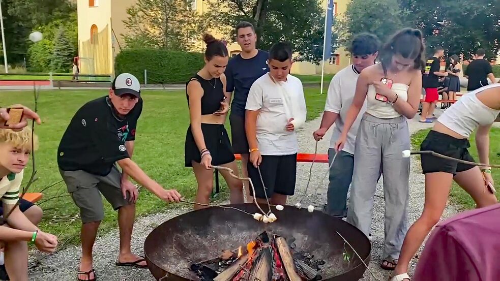 Am Abend kehrten die Jugendlichen müde, aber glücklich zum Camp zurück, wo bereits das Lagerfeuer vorbereitet wurde. Es war ein wunderschöner Abschluss des Tages. Gemeinsam setzten sich die Teilnehmer*innen um das Feuer, grillten Marshmallows und genossen die gemütliche Atmosphäre. Die Jugendlichen zeigten ihre musikalischen Talente, indem sie verschiedene Lieder zusammen mit den Betreuer*innen sangen.