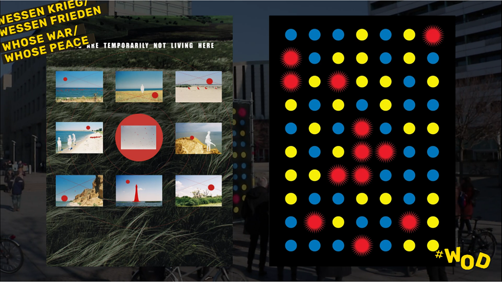 Das Kunstwerk ist ein Beitrag von insgesamt 17 künstlerischen Arbeiten zur #WOD –Banneraktion in Dresden in 2023, die unter dem Titel WESSEN KRIEG/WESSEN FRIEDEN/ WHOSE WAR/ WHOSE PEACE zu aktuellen Perspektiven des Gedenkens vor dem Hintergrund des 78. Jahrestages der Kriegszerstörung Dresdens im Februar 1945 und dem öffentlichen Gedenken an Gewalt und Zerstörung weltweit und in Europa im öffentlichen Raum in Dresden stattfand.
