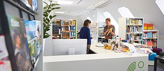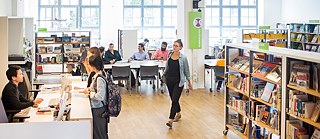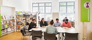 Les médiathèques du Goethe-Institut en Allemagne : selon vos besoins, vous avez ici la possibilité d’apprendre, de faire des recherches, de discuter ou de préparer vos cours ou un examen. Mais vous pouvez également venir vous y détendre, lire tranquillement un journal et papoter avec d’autres participants. L’apprentissage de l’allemand est alors un vrai plaisir.