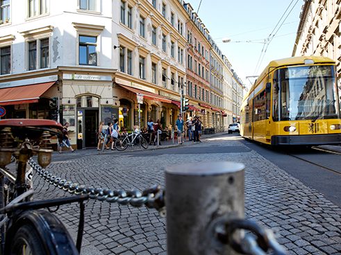 德累斯顿歌德学院位于德累斯顿历史悠久的新城,这是一个年轻人聚集、富有活力的城区,离易北河和巴洛克建筑风格的市中心走路需要大约20分钟。开阔的校园内有一个古树丛生的小公园。学院及其招待所乘坐公共交通工具很容易到达。