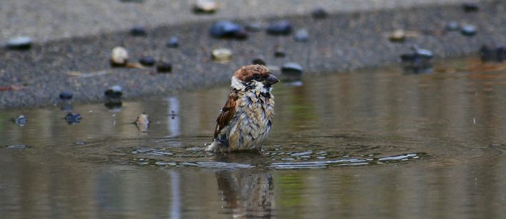 Kein Fink, aber trotzdem klug - ein Spatz beim Wasser- statt Schmutzbad
