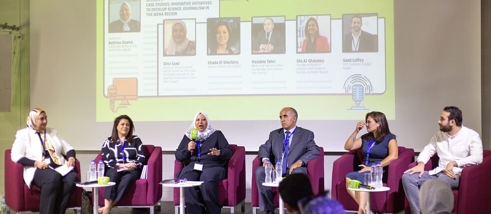 ينظم معهد جوته القاهرة هذا العام ثلاث ورش عمل حضوريًا للصحفيين الذين يعملون في وسائل الإعلام المطبوعة والمرئية والمسموعة والمهتمين بإعداد التقارير الصحفية حول الموضوعات العلمية، وأماكن عقدها هي: القاهرة وبيروت وتونس. تتكون ورش العمل من وحدات مختلفة يتلقى فيها الصحفيون تدريبًا على طرق البحث والتأكد من المصادر ومكافحة الأخبار الزائفة، وأيضًا في موضوعات أخرى مثل: تقنيات سرد القصص الصحفية أو معالجة الفكرة أو استخدام الوسائط المتعددة والرسوم البيانية. بالإضافة إلى هذه الأُسس الصحفية، يتعلم المشاركون والمشاركات @كيفية جعل العلم أكثر جاذبية وسهولة للجمهور، وكيفية تحفيز الأجيال الشابة على وجه الخصوص. علاوة على ذلك، تمكن ورش العمل المشاركين من التواصل عبر الحدود وإقامة شبكات تواصل دولية.