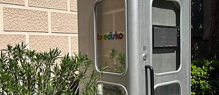Im Garten des Goethe-Instituts Madrid steht eine alte deutsche Telefonzelle, die zur kleinsten mobilen Disko der Welt, der Teledisko, umfunktioniert wurde. Darin kann man gleichzeitig DJ und Publikum sein und so viel tanzen, wie es der Platz zulässt.