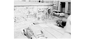 Desde el 13 de agosto de 1961, el Muro cerca a Berlín Oriental; a veces, separa a los números pares de los números impares de las casas que están a izquierda y derecha de la calle. La foto muestra cómo atraviesa las calles de las y los berlineses, cuánto se acerca a sus ventanas y de qué manera tan forzadamente natural viven con ella.