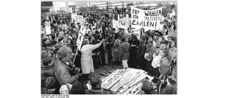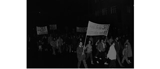 Todos los lunes, después de las prédicas por la paz en las iglesias de Alemania Oriental, queda claro –cada vez más– que estos números no expresan el voto real en el país. En las manifestaciones de los lunes, las y los ciudadanos marchan contra el régimen. “Al principio, la atmósfera todavía era muy tensa y temerosa”, describe la testigo presencial, quien participó en las manifestaciones en Jena, pues finamente todos los y las asistentes sabían cómo trataba el régimen a las y los opositores. Katharina Steinhäuser describe esa sensación como el tono de fondo de la RDA: un zumbido o murmullo de miedo que estuvieron resonando en segundo plano durante años. “Claro que también había momentos en los que éramos felices, recién enamorados, jóvenes. Pero se esperaba que gritáramos ‘¡Hurra!’ todo el tiempo… e incluso eso podía ser un error. Recuerdo una gran desolación.” Las situaciones y las armas cotidianas estaban permeadas por “la permanente y difusa incertidumbre y por el miedo a hacer algo mal, a que te encarcelaran de manera injusta y a estar a merced del Estado.” Steinhauser recuerda su primera manifestación: “Cuando escuché que en Leipzig se estaban manifestando decenas de miles, me armé de valor. Pensé: Ahora sí ya no puedes quedarte a un lado. Saber cuántos estaban participando ya de suyo nos dio muchos ánimos.”
